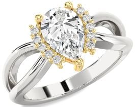 Diamond White Yellow Gold Pear Solitaire Engagement Ring