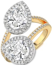 Diamond White Yellow Gold Pear Two Stone Pave Ring