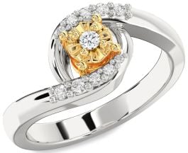 This Promise ring features a captivating swirl design in lustrous yellow gold, centered with a brilliant round-cut diamond set in a radiant, sunburst-inspired motif. Accented by a gentle arc of glittering side diamonds, the asymmetrical elegance of the band adds a modern twist. A meaningful and stylish symbol of love and devotion, perfect for marking a lasting promise.
