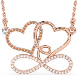Large Diamond & Citrine Platinum & Rose Gold Heart Infinity Necklace