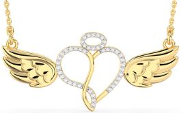 Large Diamond Gold Heart Angel Necklace