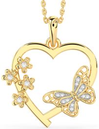 This Heart Flower Butterfly Necklace is available in Gold, Platinum and Sterling Silver set with a choice of Diamonds and Gemstones. The current selection is made from . . . .