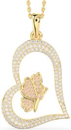 Large Diamond & Morganite Gold Heart Butterfly Necklace