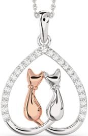 Large Diamond Platinum & Rose Gold Heart Cat Necklace