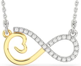 Large Diamond Platinum & Yellow Gold Infinity Heart Necklace