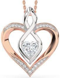 Large Diamond Rose Gold Silver Heart Infinity Necklace
