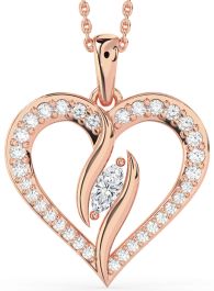 Large Diamond Rose Gold Silver Heart Necklace