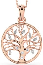 Large Diamond Rose Gold Silver Tree Of Life Round Necklace