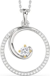 Large Diamond Silver & 10K gold Circle Necklace