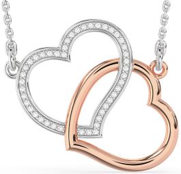 Large Diamond Silver & 10K Rose Gold Heart Interlock Necklace