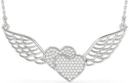 Lift your style to new heights with this radiant pendant, where two shimmering hearts unite beneath a graceful pair of outstretched wings. The airy design symbolizes love that knows no bounds, offering a sense of freedom, strength, and deep connection. Whether a token of self-love or a gift for someone cherished, this piece captures the soaring beauty of hearts that belong together.