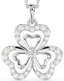 This delicate pendant features a charming clover design, where heart-shaped petals intertwine to create a symbol of luck and love. The outer edges are softly outlined with sparkling accents, adding a touch of brilliance that enhances the graceful curves. This piece beautifully blends sentiment and elegance, making it a perfect token of affection and good fortune.