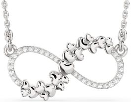 Symbolizing love without limits, this enchanting necklace features a graceful infinity motif adorned with a cascade of polished hearts. Sparkling accents trace the curves of the design, adding a luminous touch that enhances its romantic appeal. A beautiful celebration of everlasting connection and deep affection, this piece shines with meaning and timeless elegance.