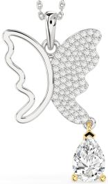 Playful elegance takes flight in this charming butterfly-inspired pendant. One wing sparkles with pavé-set stones, creating a radiant contrast to the smooth, open goldwork on the other. A luminous pear-cut drop adds a graceful, unexpected twist. Light and airy with a touch of glamour, this pendant makes a joyful statement perfect for free spirits and dreamers alike.
