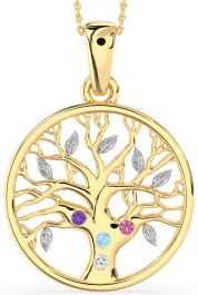 Large Gold Silver Tree Of Life Round Mother's Necklace