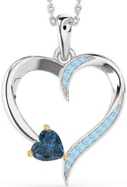 London Blue Topaz & Aquamarine White Yellow Gold Heart Necklace
