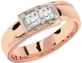 Men's Diamond Platinum & Rose Gold Princess Two Stone Band Ring