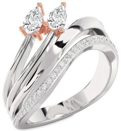 Diamond Platinum & Rose Gold Pear Two Stone Ring