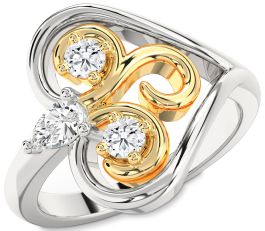 Diamond Platinum & Yellow Gold Heart Three Stone Ring