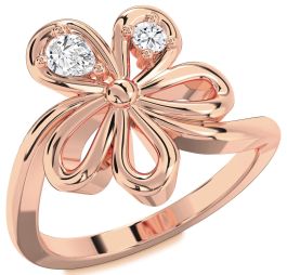 Diamond Rose Gold Silver Flower Pear Two Stone Ring