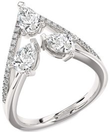This Mother's ring features a captivating triangular silhouette, symbolizing the powerful connection between a mother and her children. The trio of pear-shaped gems, each uniquely radiant, represents the individuality of each child. Sparkling accents along the edges add a celestial touch, echoing the brilliance of a mother's unwavering love and graceful strength.