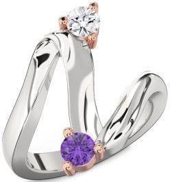 Platinum & Rose Gold Round Two Stone Promise Ring