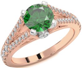 Diamond Emerald White Rose Gold Round Solitaire Pave Engagement Ring