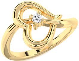 This delicate promise ring showcases a gracefully sculpted open heart crafted in polished yellow gold, centered with a sparkling round-cut diamond in a classic prong setting. The softly flowing lines of the band cradle the heart motif, creating a romantic and feminine design. A timeless promise ring like this speaks of lasting commitment and heartfelt emotion.