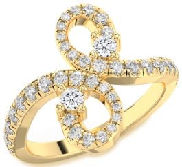 Diamond Gold Infinity Round Two Stone Pave Ring