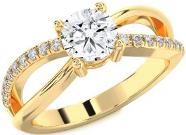 Graceful and radiant, this engagement ring features a brilliant center stone framed by an elegantly split band. One arm of the band is polished and sleek, while the other sparkles with a line of dazzling accents, creating contrast and flow. Symbolizing balance and unity, this ring beautifully captures the intertwining paths of two hearts destined to shine as one.