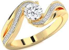 Elegant and eye-catching, this engagement ring features a luminous center stone embraced by a sweeping band that flows like a gentle wave. Sparkling accents line the curves, adding brilliance and motion to the design. Symbolizing the natural rhythm and strength of love, this ring is a graceful expression of two lives beautifully intertwined in harmony.