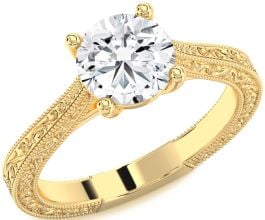 This engagement ring radiates vintage-inspired elegance with its ornate detailing and timeless charm. The band features intricate scrollwork and delicate beaded edges that evoke a sense of heirloom craftsmanship. At its heart, a radiant center stone captures the essence of enduring love, making this design a tribute to tradition, romance, and everlasting commitment.