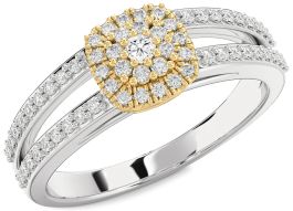 This Promise ring exudes brilliance and elegance with a cushion-style cluster of round diamonds that form a sparkling centerpiece. The split shank is adorned with twin rows of diamonds, enhancing its radiance and sophistication. Crafted in polished yellow gold, this ring is a meaningful expression of love and commitment, perfect for marking a heartfelt promise.