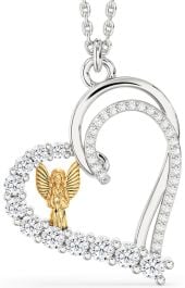 Diamond Gold Silver Heart Angel Necklace