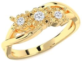 Diamond Gold Silver Round Three Stone Engagement Ring