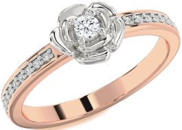 Diamond Platinum & Rose Gold Flower Round Pave Promise Ring