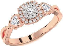 Diamond Rose Gold Heart Three Stone Engagement Ring