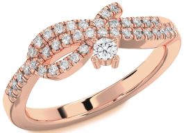 This charming Promise ring showcases a delicate ribbon-like crossover design, lined with pavé-set diamonds that form a graceful twist. A round-cut diamond takes center stage in a four-prong setting, enhancing its elegance. Crafted in polished yellow gold, this Promise ring symbolizes love and unity, making it a heartfelt expression of commitment and devotion.