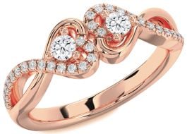 Diamond Rose Gold Silver Heart Infinity Two Stone Ring