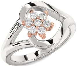 Diamond Silver & 10K Rose Gold Heart Flower Promise Ring