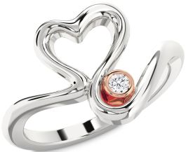 Diamond Silver & 10K Rose Gold Heart Promise Ring
