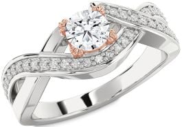 Diamond Silver & 10K Rose Gold Infinity Round Solitaire Engagement Ring