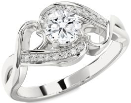 Romantic and radiant, this engagement ring features a glowing center stone framed by two sculpted hearts that embrace it with graceful curves. A trail of shimmering accents enhances the design, adding brilliance and depth. Symbolizing love in its purest form, this ring beautifully captures a heartfelt promise and the emotional journey shared between two souls.