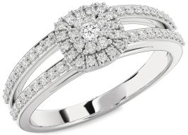 This Promise ring exudes brilliance and elegance with a cushion-style cluster of round diamonds that form a sparkling centerpiece. The split shank is adorned with twin rows of diamonds, enhancing its radiance and sophistication. Crafted in polished yellow gold, this ring is a meaningful expression of love and commitment, perfect for marking a heartfelt promise.