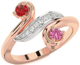 This graceful promise ring showcases a swirling yellow gold band that embraces two radiant round stones—one brilliant blue and one vivid pink. A sleek channel of shimmering white stones flows between the curves, adding sparkle and sophistication. Symbolizing a deep and colorful bond, this promise ring is a heartfelt tribute to unity, love, and lasting devotion.