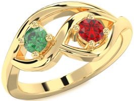 This elegant promise ring features two round-cut gemstones—one pastel blue and one soft pink—gracefully set within an infinity-inspired yellow gold band. The intertwining design symbolizes eternal love and unity, making it a heartfelt and meaningful promise ring. Its delicate craftsmanship and vibrant colors create a timeless expression of your lasting bond.