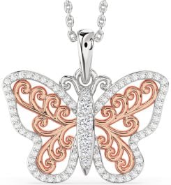 Large Diamond Platinum & Rose Gold Butterfly Necklace