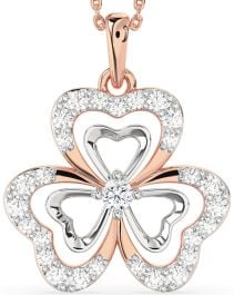 Large Diamond Platinum & Rose Gold Shamrock Necklace