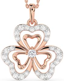 Large Diamond Rose Gold Silver Shamrock Necklace