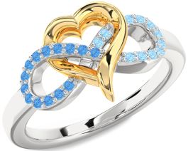 Swiss Blue Topaz & Aquamarine Platinum & Yellow Gold Infinity Heart Promise Ring